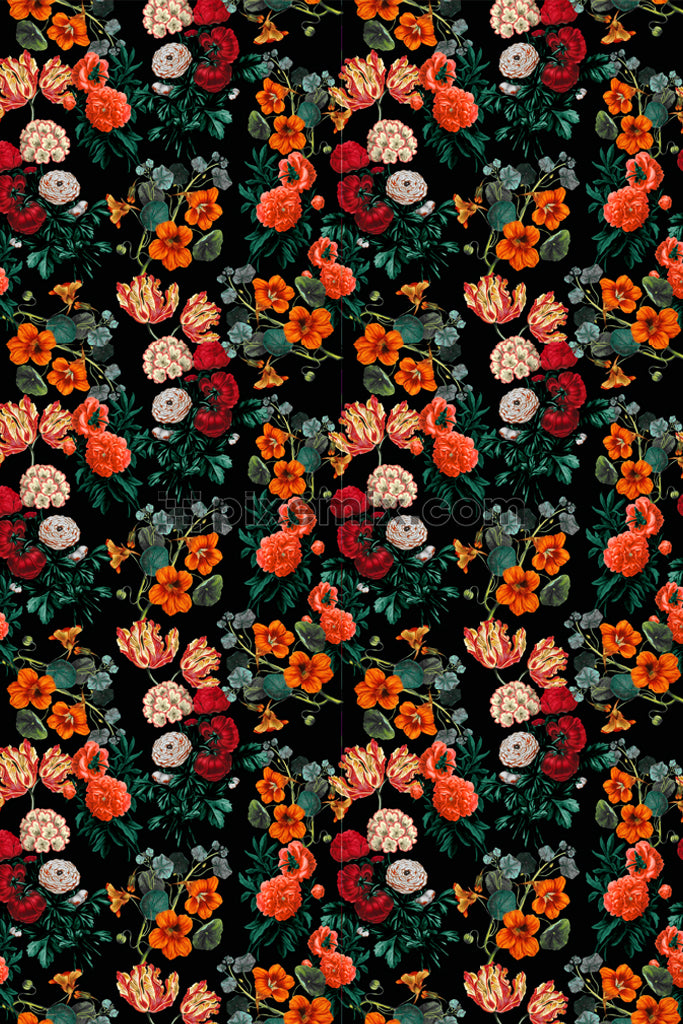Digitale Produktgrafik mit Blumen und Blättern und nahtlosem Wiederholungsmuster