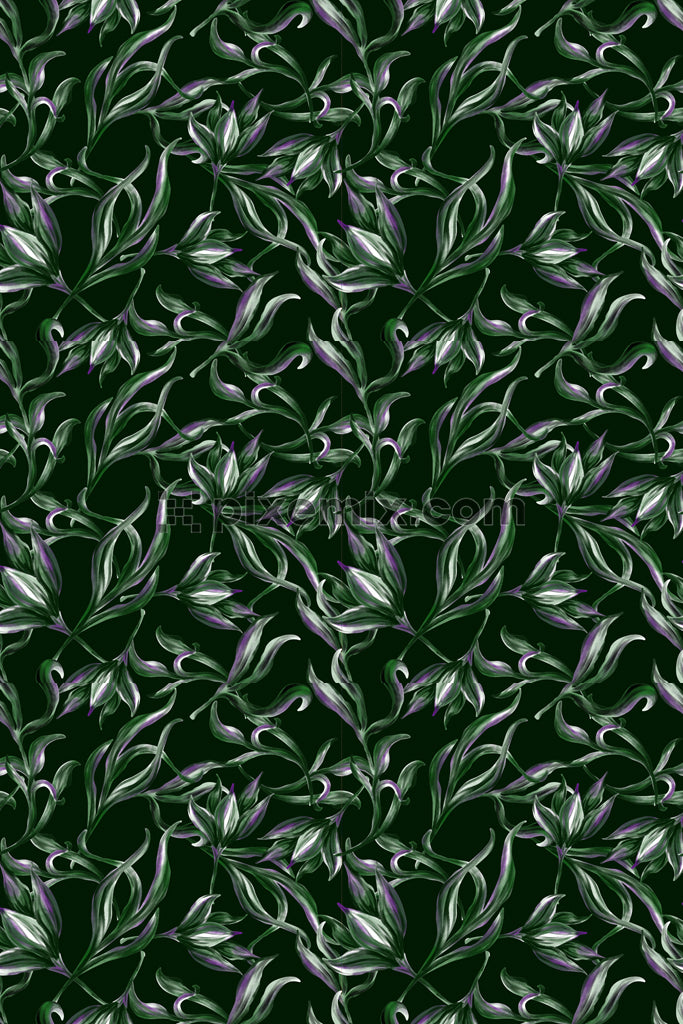Von digitaler Kunst inspirierte Produktgrafik mit Aquarellblättern und nahtlosem Wiederholungsmuster