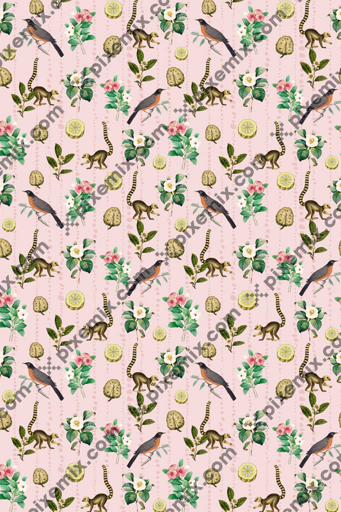 Digitale Blumen- und Tierproduktgrafik mit nahtlos wiederholtem Muster
