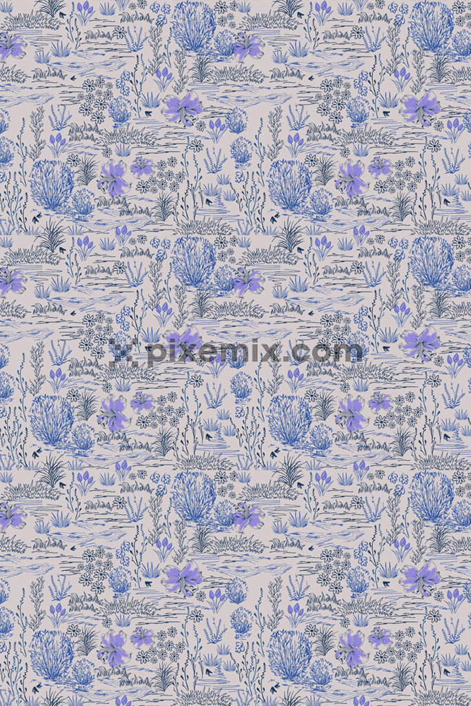 Lineart-Blätter und Blumen-Produktgrafik mit nahtlosem Wiederholungsmuster