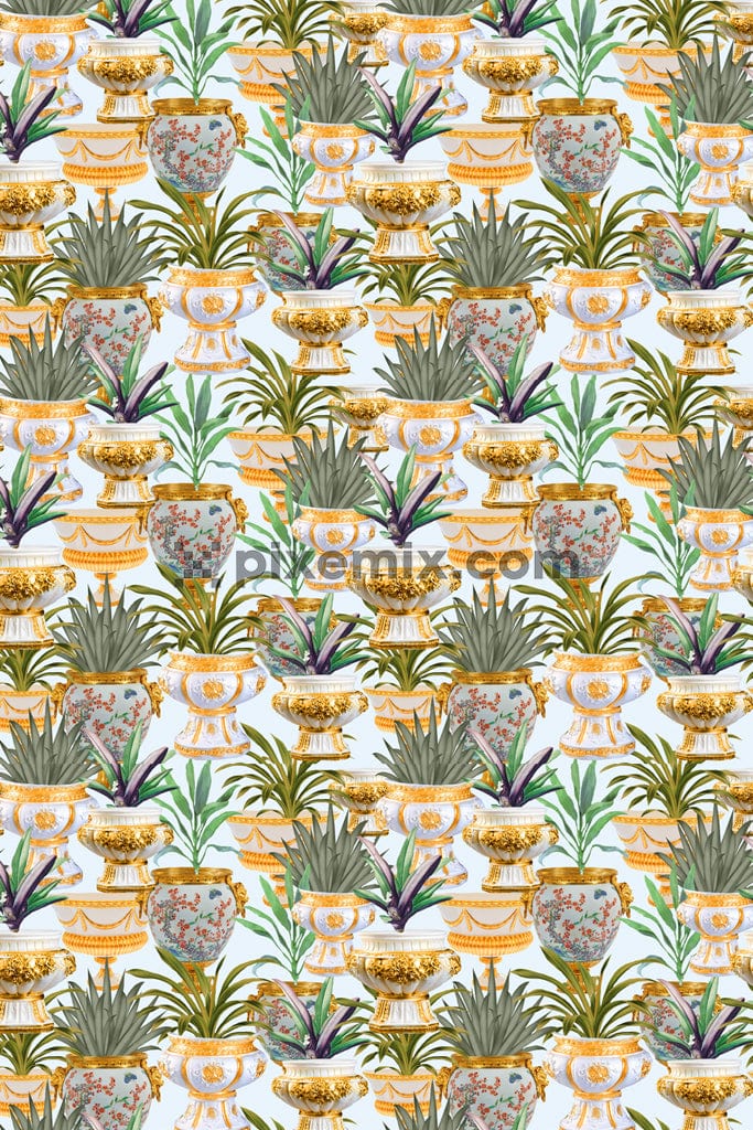 Digitale Vasen- und Pflanzenproduktgrafik mit nahtlosem Wiederholungsmuster