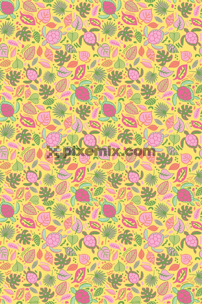 Vektorblätter und Schildkrötenproduktgrafik mit nahtlosem Wiederholungsmuster