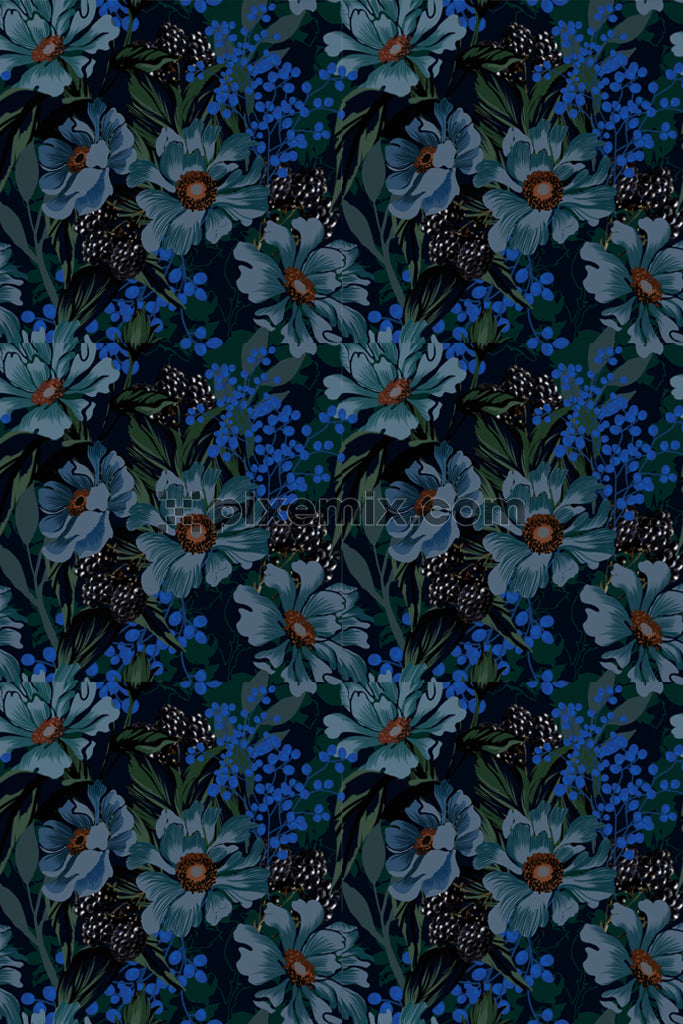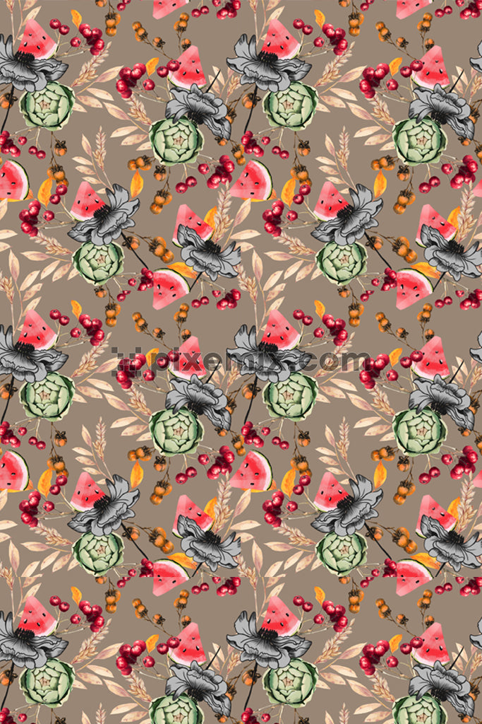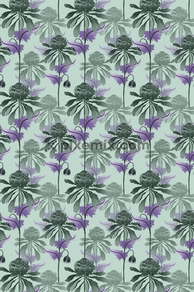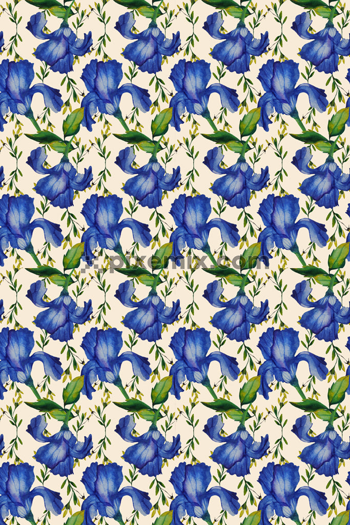 Mughal art inspired leaf and florals product graphic with seamless repeat pattern