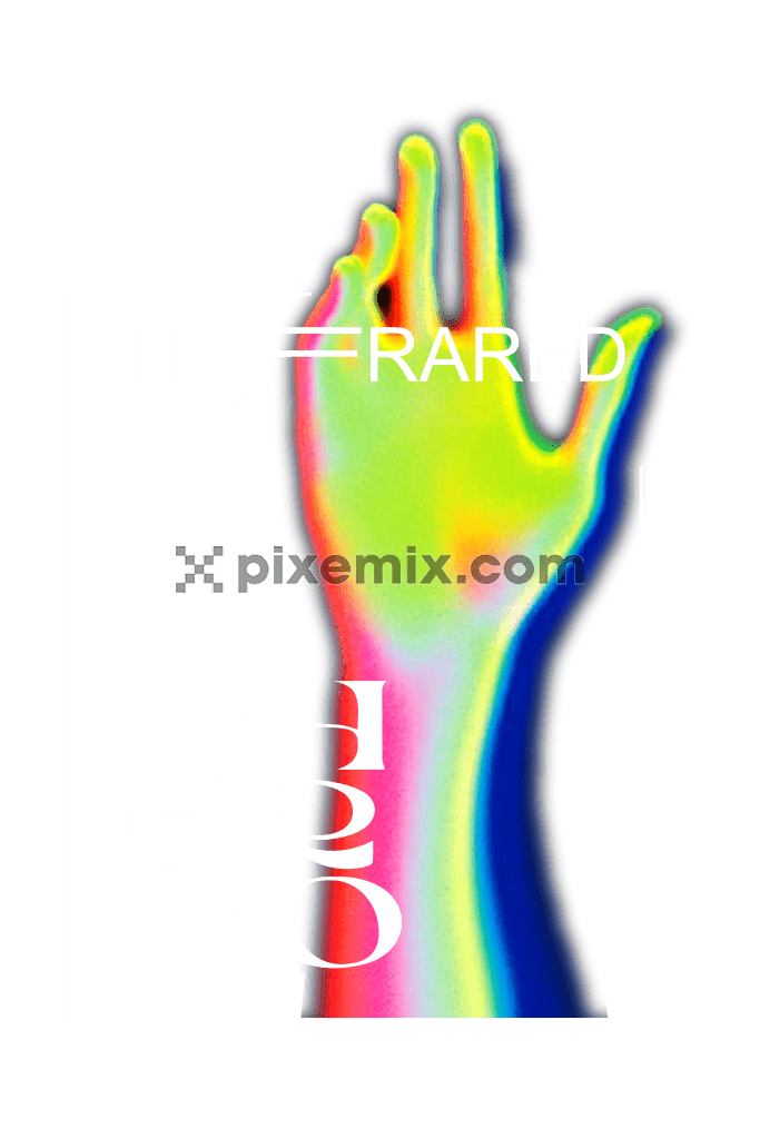 Eine Hand mit RGB-Verschiebung auf einer Infrarot-Wärmebildkamera mit Typografie.