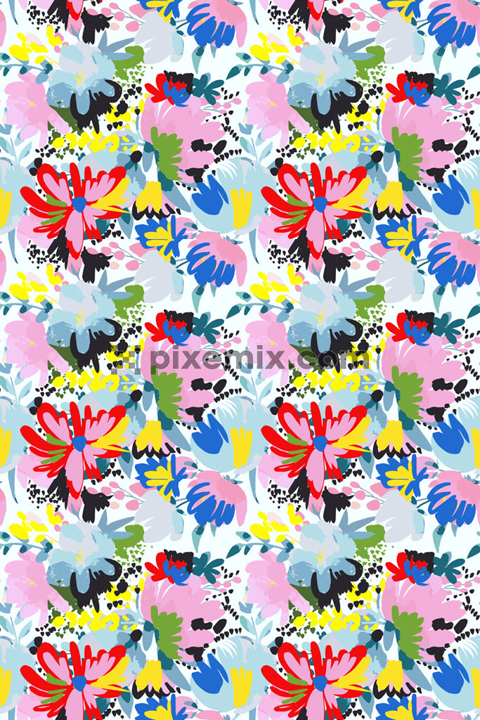 Produktgrafik mit Blumen und Pinselstrichen und nahtlosem Wiederholungsmuster