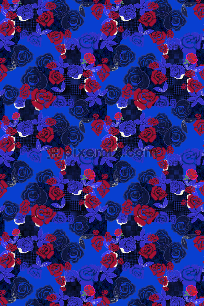 Leuchtende Produktgrafik mit Blumen und Blättern und nahtlosem Wiederholungsmuster