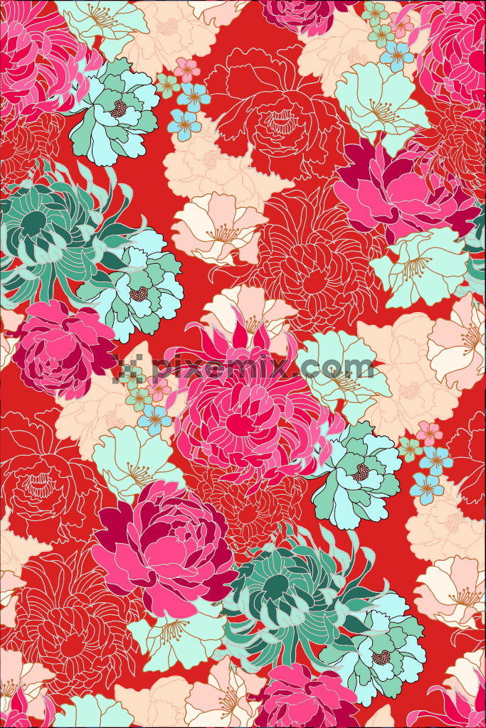 Leuchtende Blumen-Produktgrafik mit nahtlos wiederholtem Muster