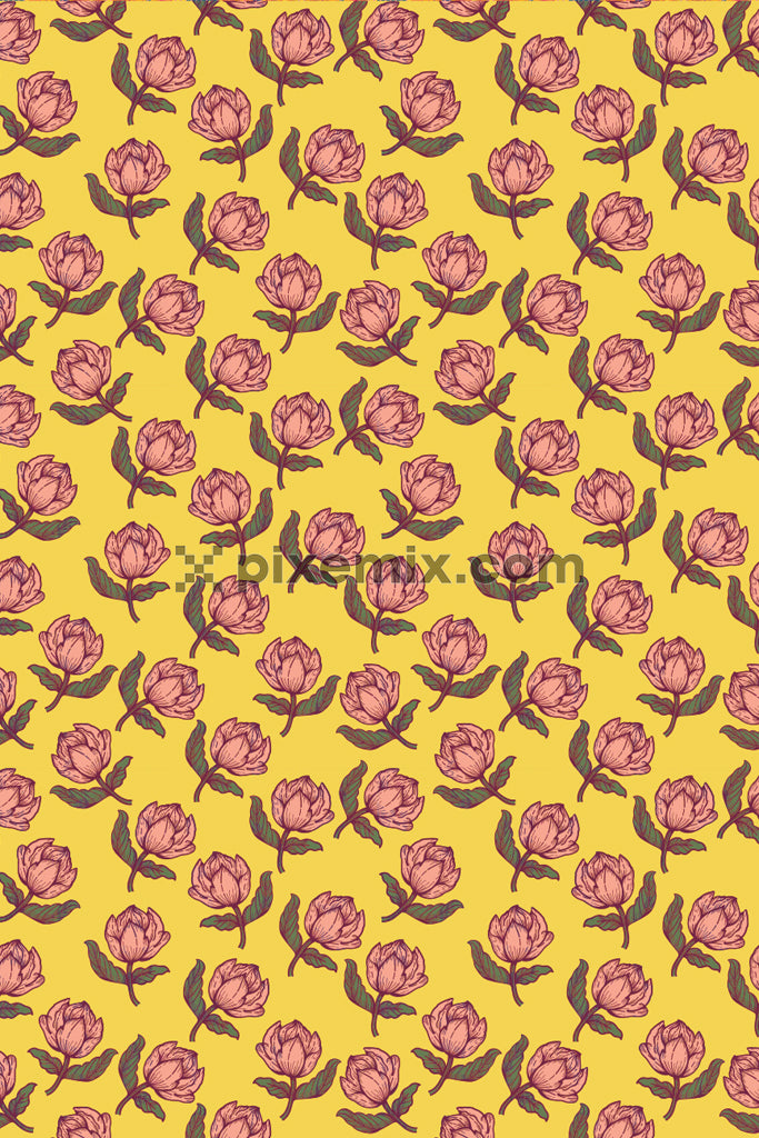 Produktgrafiken mit Blumen und Blättern und nahtlosem Wiederholungsmuster