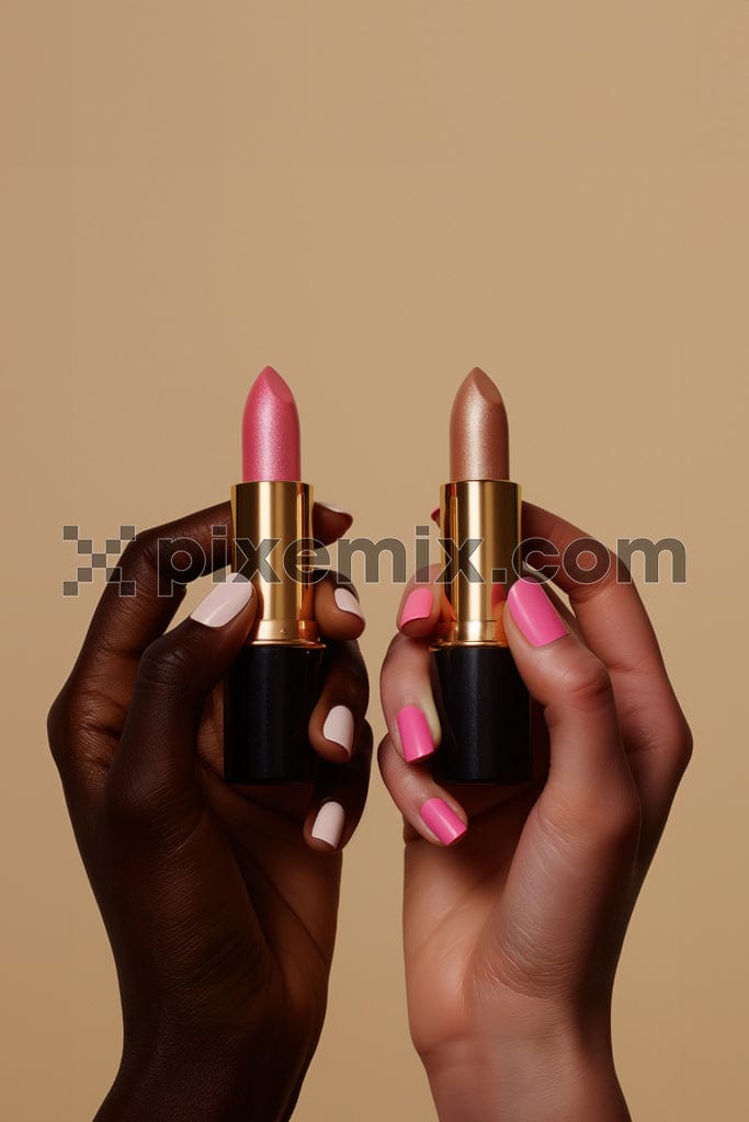 Beschnittene Aufnahme einer Frau mit Lippenstift auf braunem Hintergrundbild.