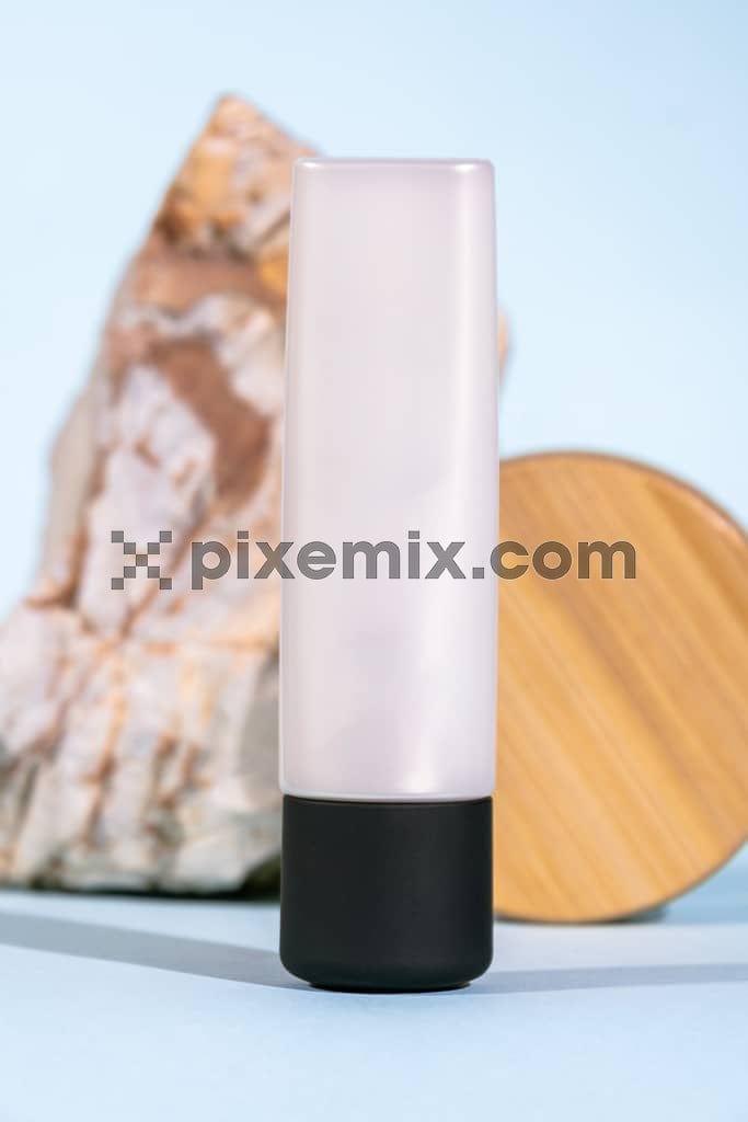 Flaschen mit Handcreme auf einem blauen Hintergrundbild.