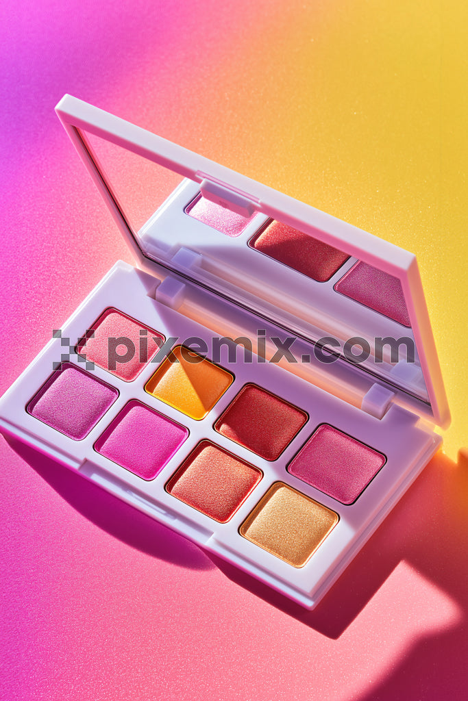 Vibrant eyeshadow palette with warm and bold shades stock image.
