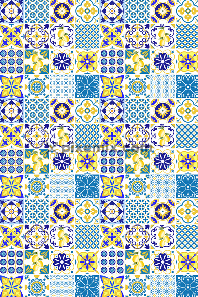 Geometrische Form und Zitronenproduktgrafik mit sich nahtlos wiederholendem Muster