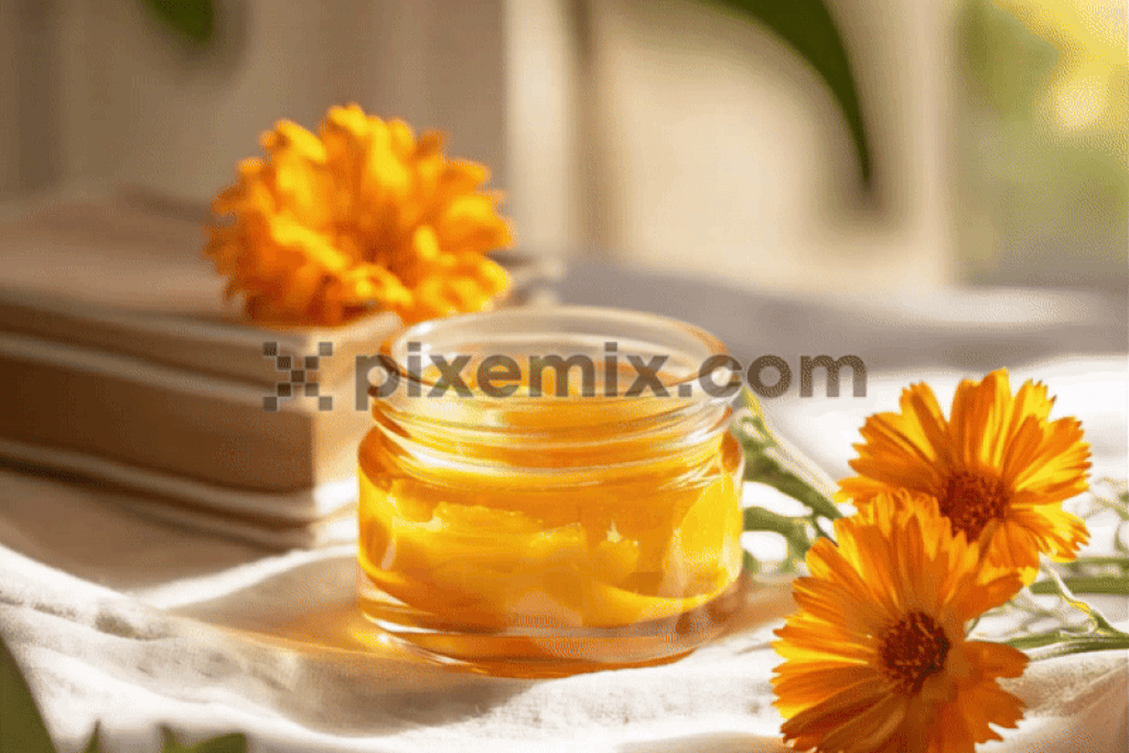 Eine Kosmetikflasche mit Blume. Stockvideo.