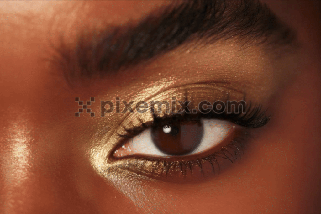 Eine atemberaubende Nahaufnahme eines Auges, das mit sattem, goldenem Metallic-Lidschatten geschmückt ist. Stockvideo.