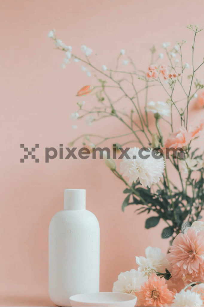 Ein elegantes Arrangement mit einer minimalistischen weißen Kosmetikflasche neben einer dazu passenden Schale. Stock-Video.