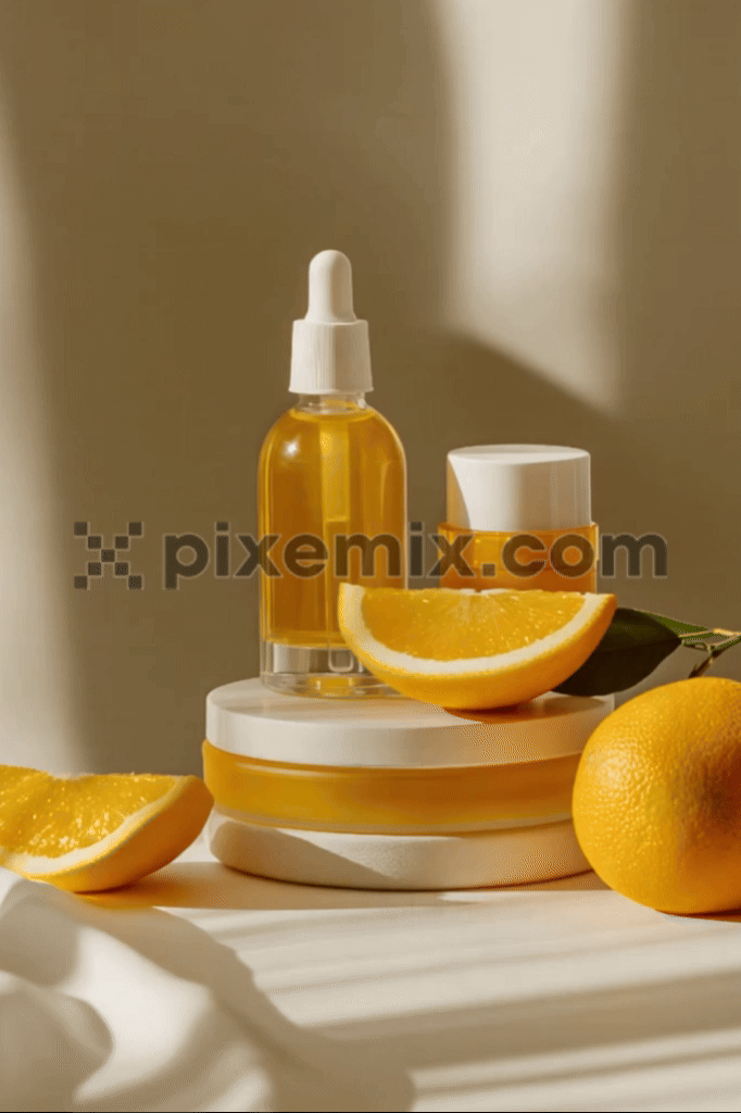 Die zartrosa Flasche mit Pumpspender harmoniert perfekt mit den umgebenden frischen Pfirsichen und erzeugt eine beruhigende, pastellfarbene Ästhetik. Stockvideo.