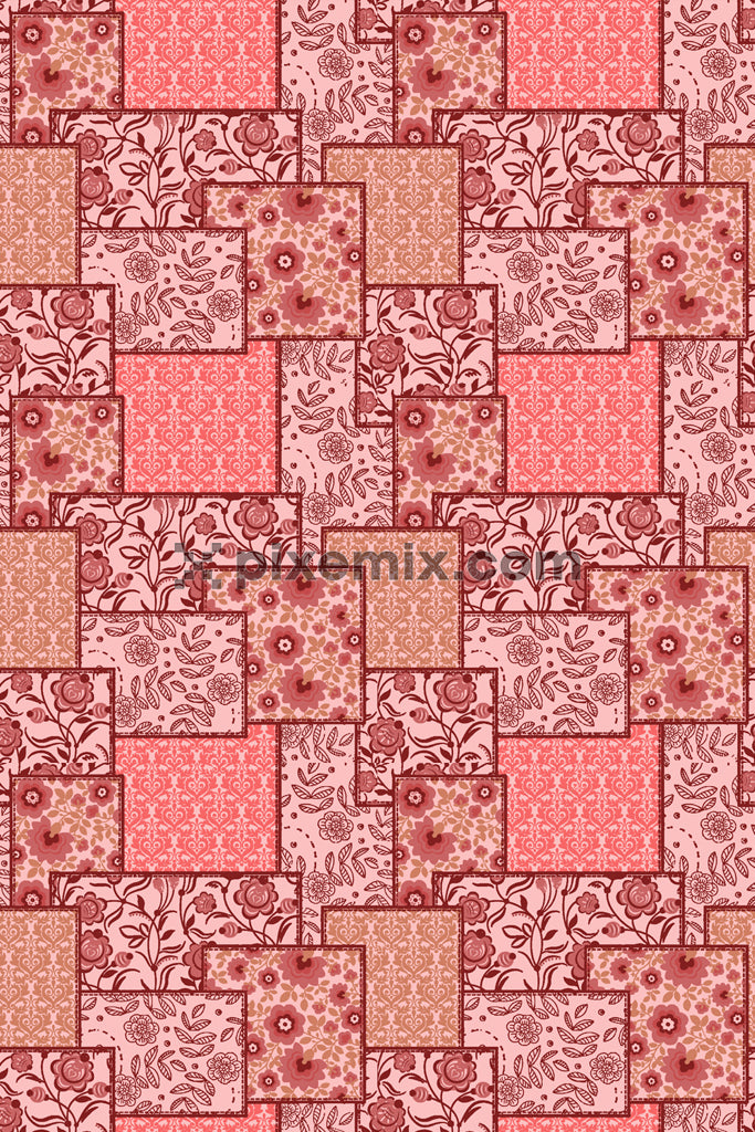 Von einer Collage inspirierte, tonale Mix & Match-Produktgrafik mit floraler Kunst und nahtlosem Wiederholungsmuster