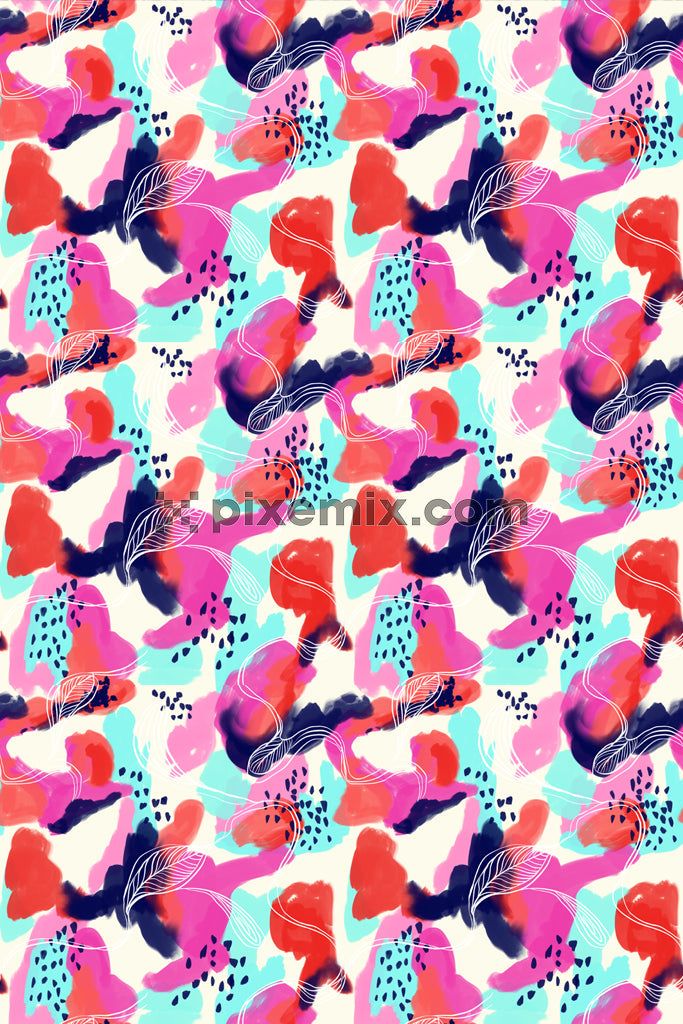 Vibrant abstract seamless pattern with colorful brush strokes & ink textures product graphic.