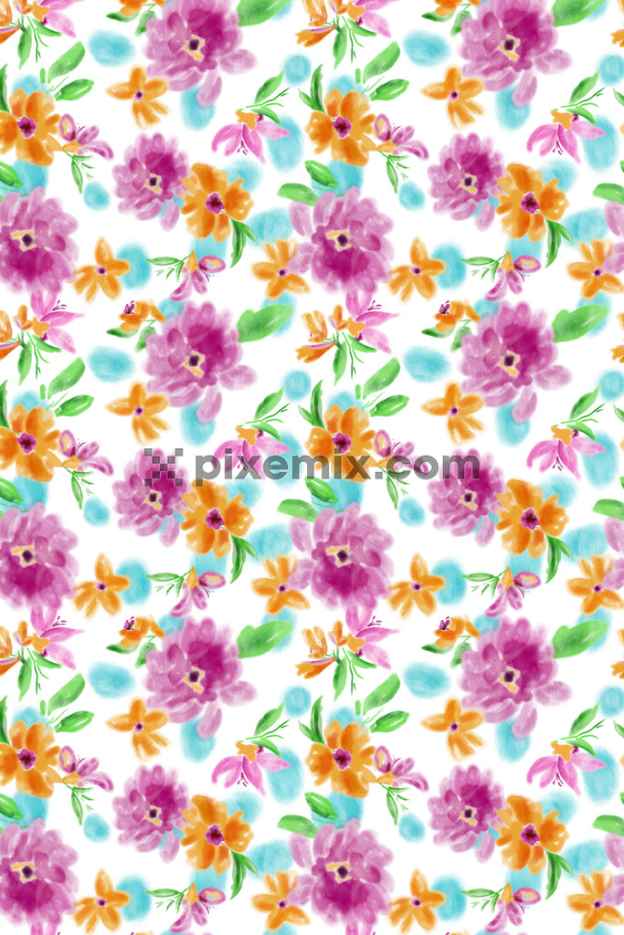 Produktgrafik mit Aquarellblumen und nahtlosem Wiederholungsmuster