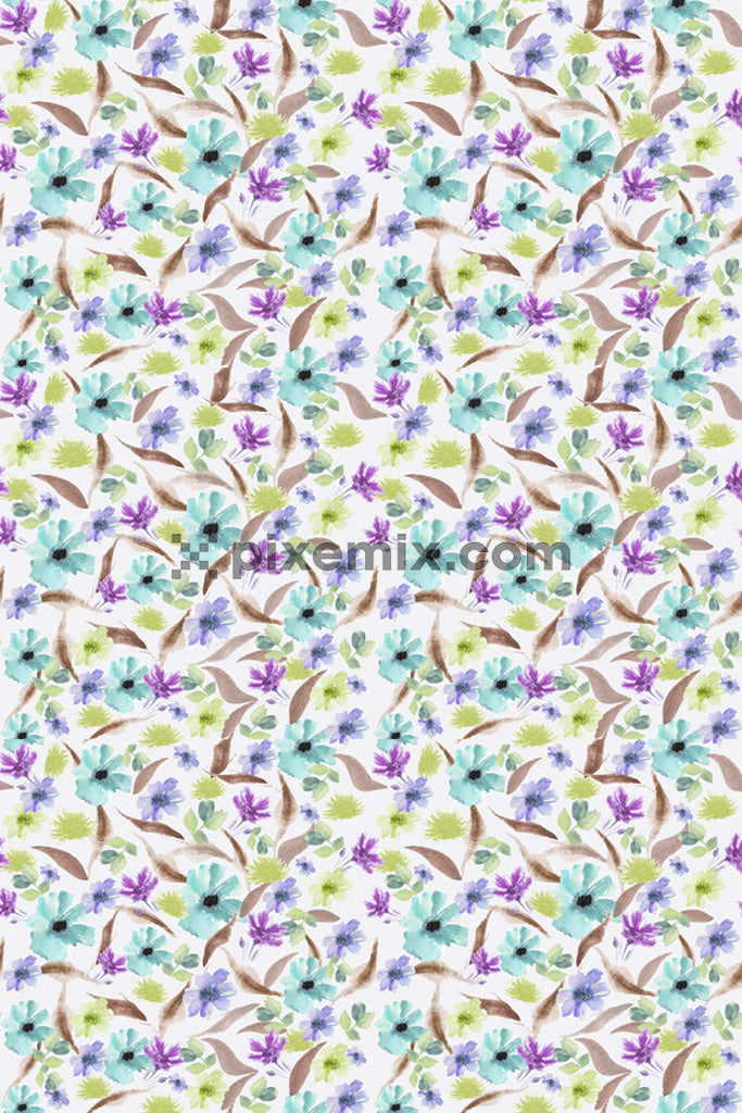 Produktgrafiken mit Blumen und Blättern in Aquarell mit nahtlos wiederholtem Muster