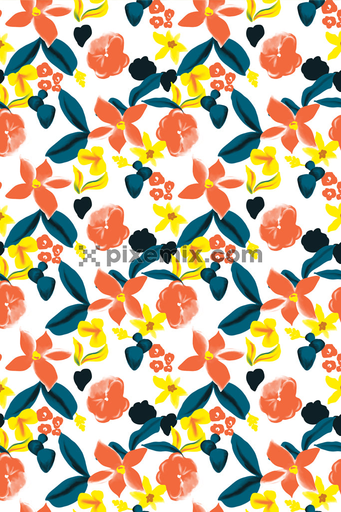 Von digitaler Kunst inspirierte Produktgrafik mit Aquarellblumen und nahtlosem Wiederholungsmuster