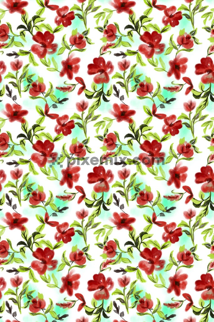 Produktgrafik mit Blumen und Blättern in Aquarell mit nahtlosem Wiederholungsmuster
