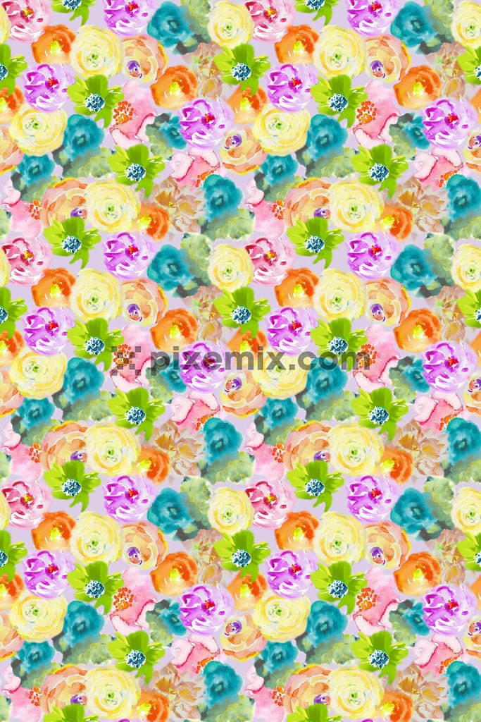 Produktgrafik mit Aquarellblumen und nahtlosem Wiederholungsmuster