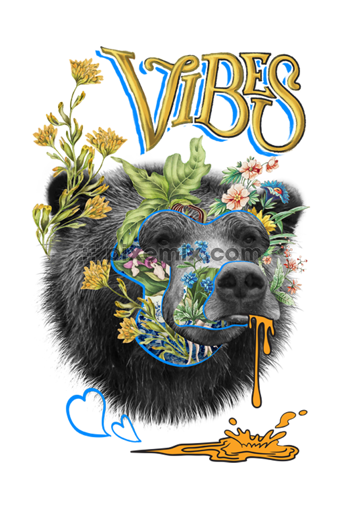 Sliced bear face with florals typography product graphic