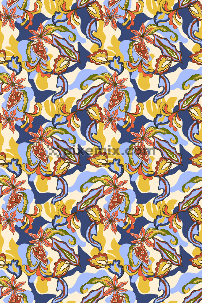 Abstract shape and florals art product graphic with seamless repeat pattern