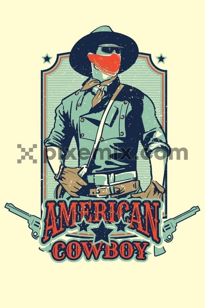 Retro cowboy vector product graphic with distress effect