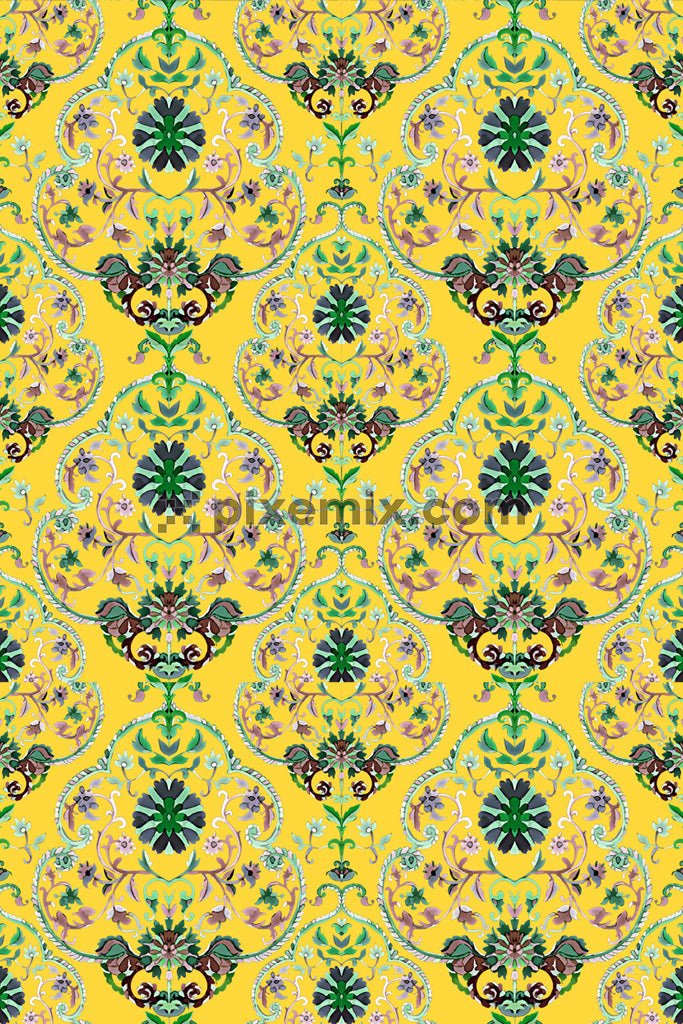 Artistic intricate water color effect ethnic motifs product graphic with seamless repeat pattern