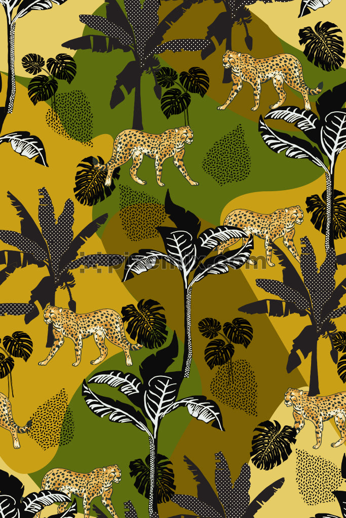 Tropical leaf and leopard product graphic with seamless repeat pattern