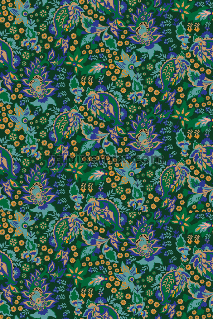 Beautiful floral style paisley vector product graphic with seamless repeat pattern
