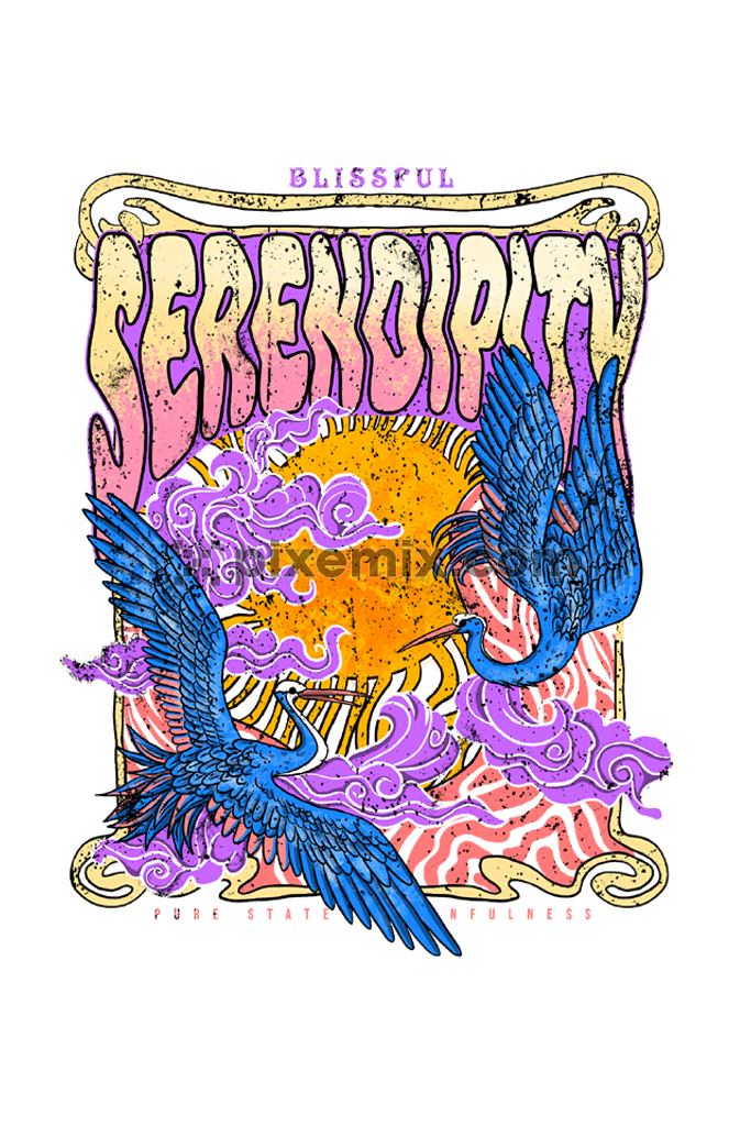 Oriental inspired cranes and typography graphic