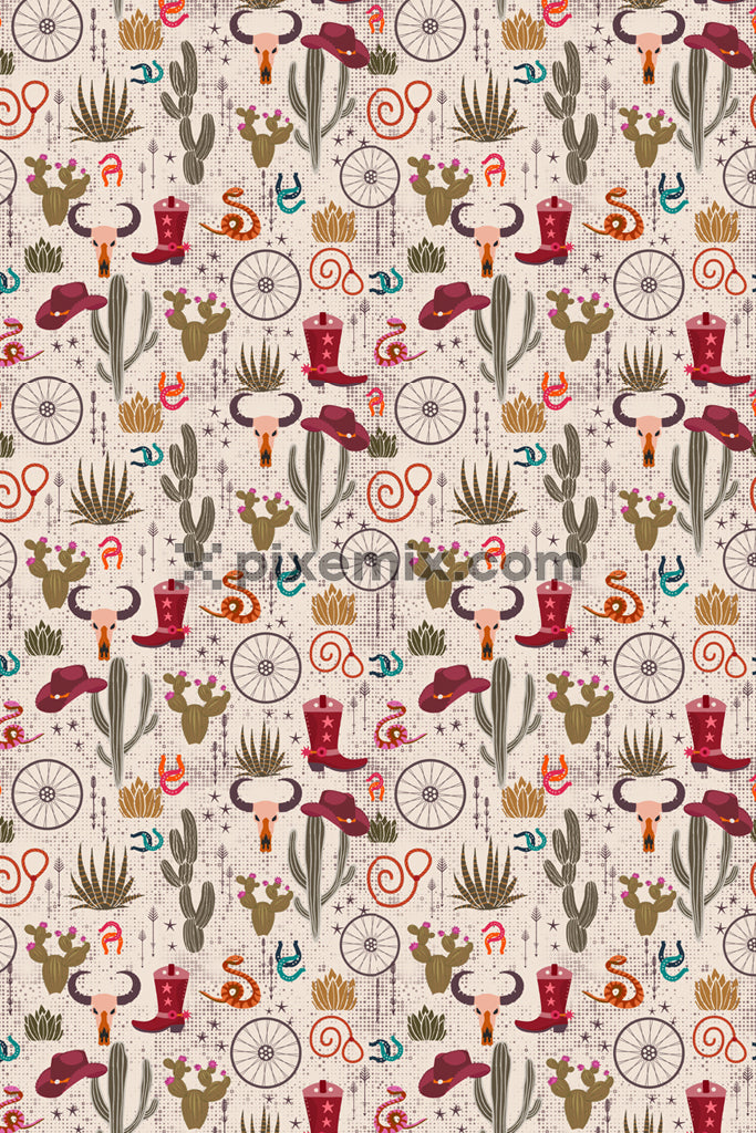 Cactus and desert icon product graphic with seamless repeat pattern