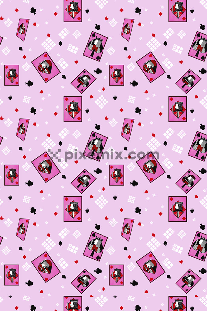 Aces of spades, clubs, diamonds and hearts icons product graphic with seamless repeat pattern