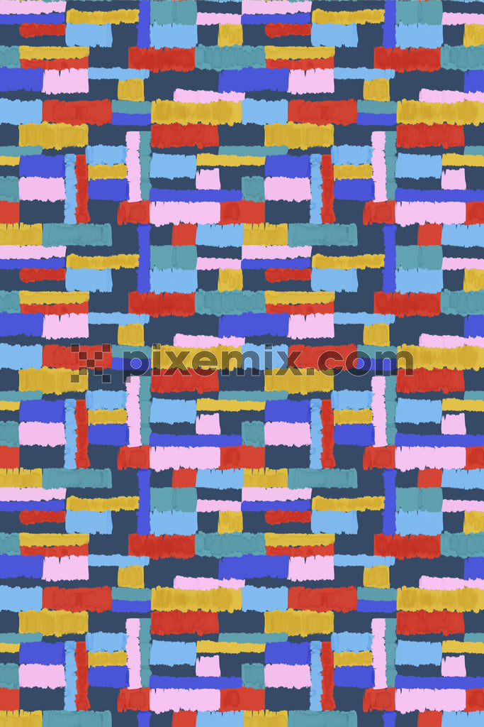 Colorful abstract brushstroke pattern in vibrant tones of blue, red, yellow, pink, and teal pattern.