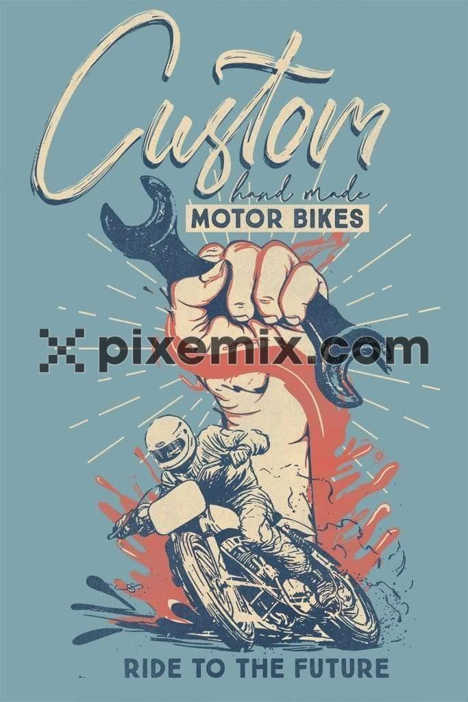 Vintage handart motorcycling product graphic with distress effect