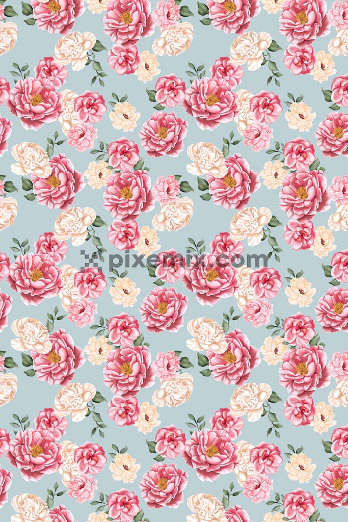 A handmade product graphic with seamless repeating of pattern inspired by florals.