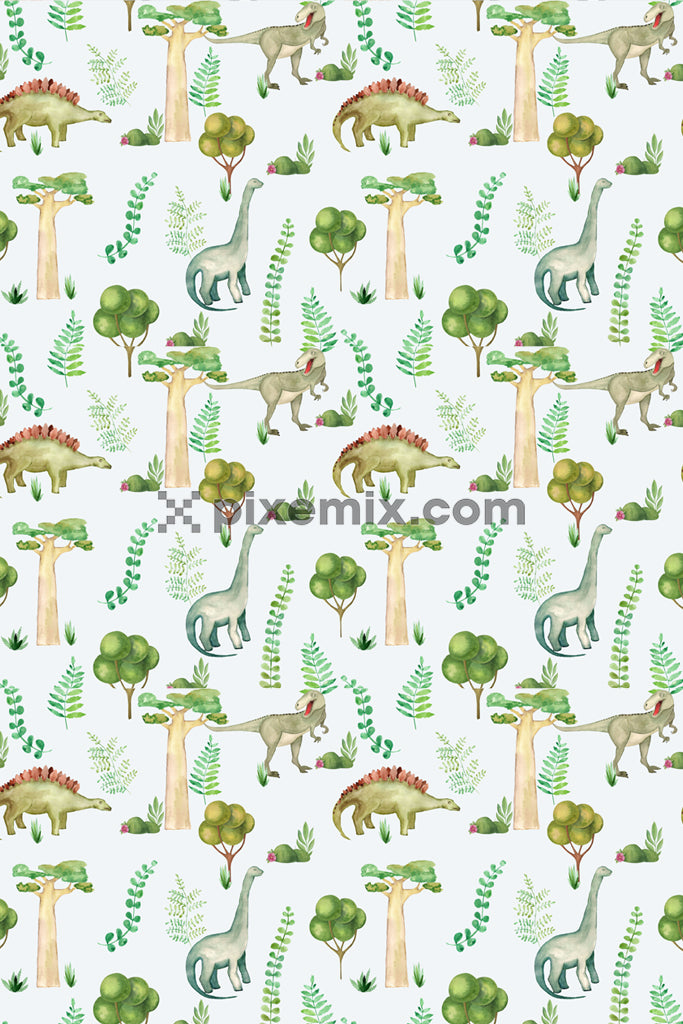 Cute watercolor dinosaur in wildlife product graphic with seamless repeat pattern