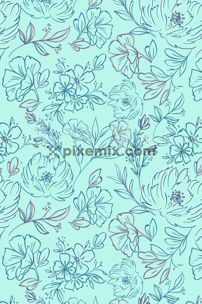 Floral doodle art vector poduct graphic with seamless pattern
