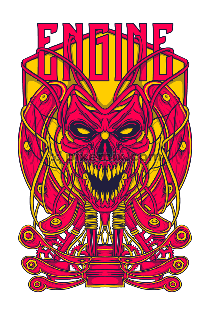 Pop art inspired human face and engine product graphic
