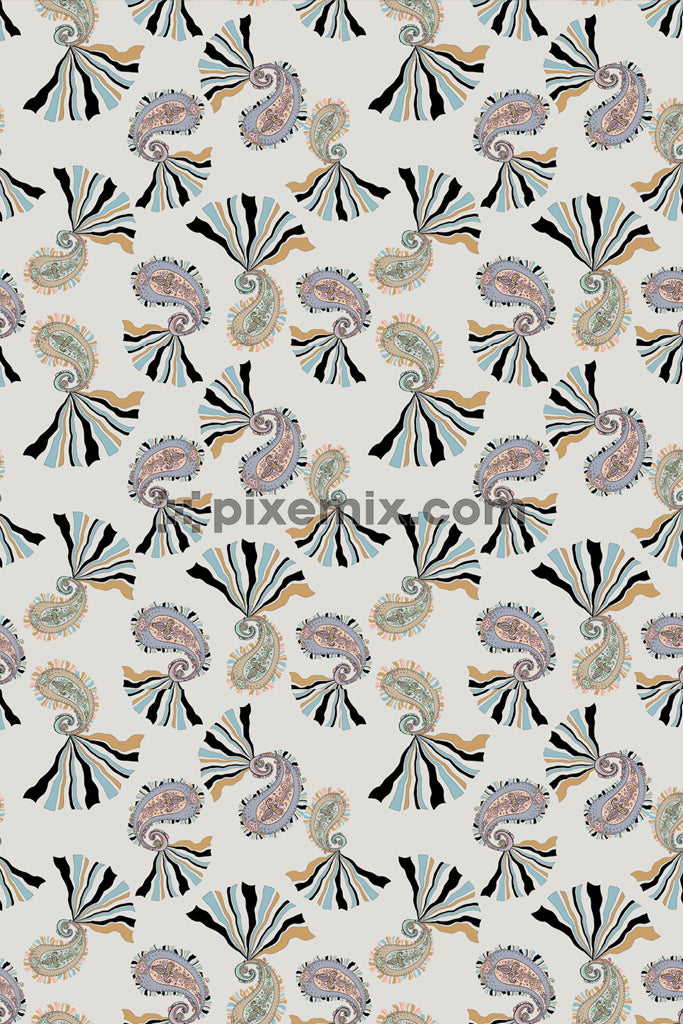 Abstract geometricial pattern with paisley art product graphic with seamless repet pattern
