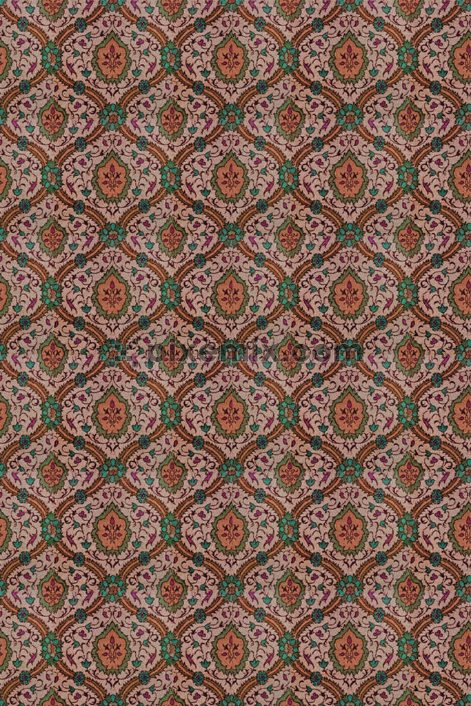 Persian inspired paisley art and florals product graphic with seamless repeat pattern