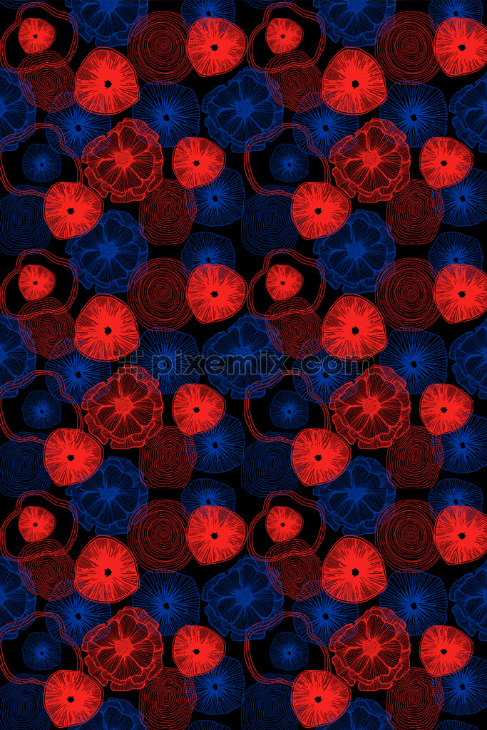 Abstract line art shapes and florals product graphic with seamless repeat pattern