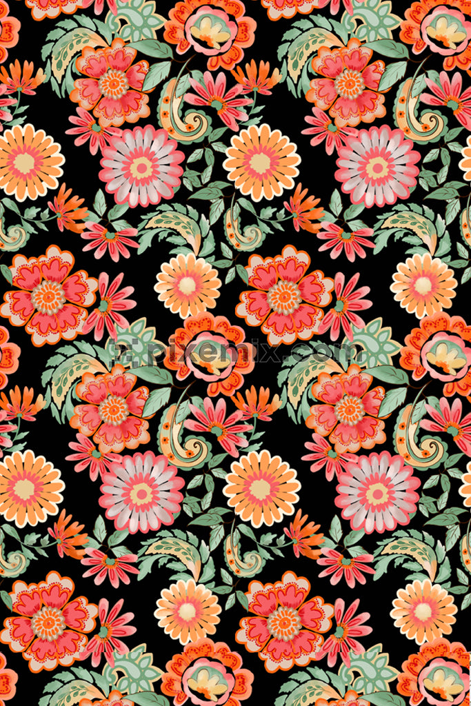 Elegant floral pattern product graphic with seamless repeat pattern