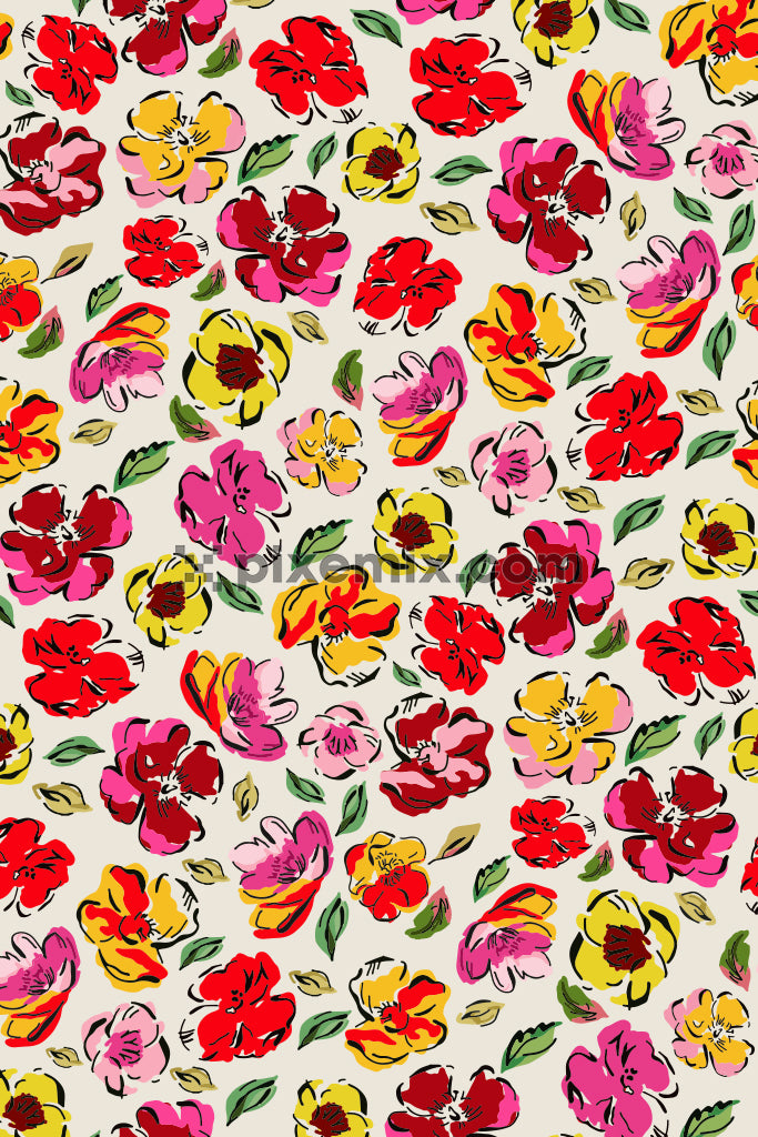 Colorful doodle leaf product graphic with seamless repeat pattern