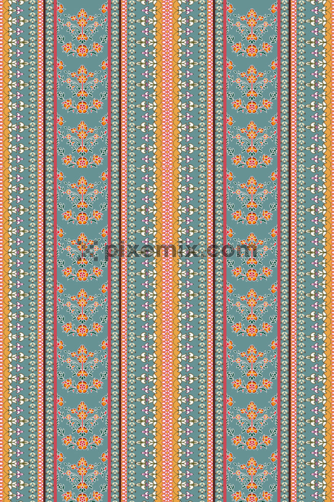 Doodle art inspired florals and leaf product graphic with seamless repeat pattern