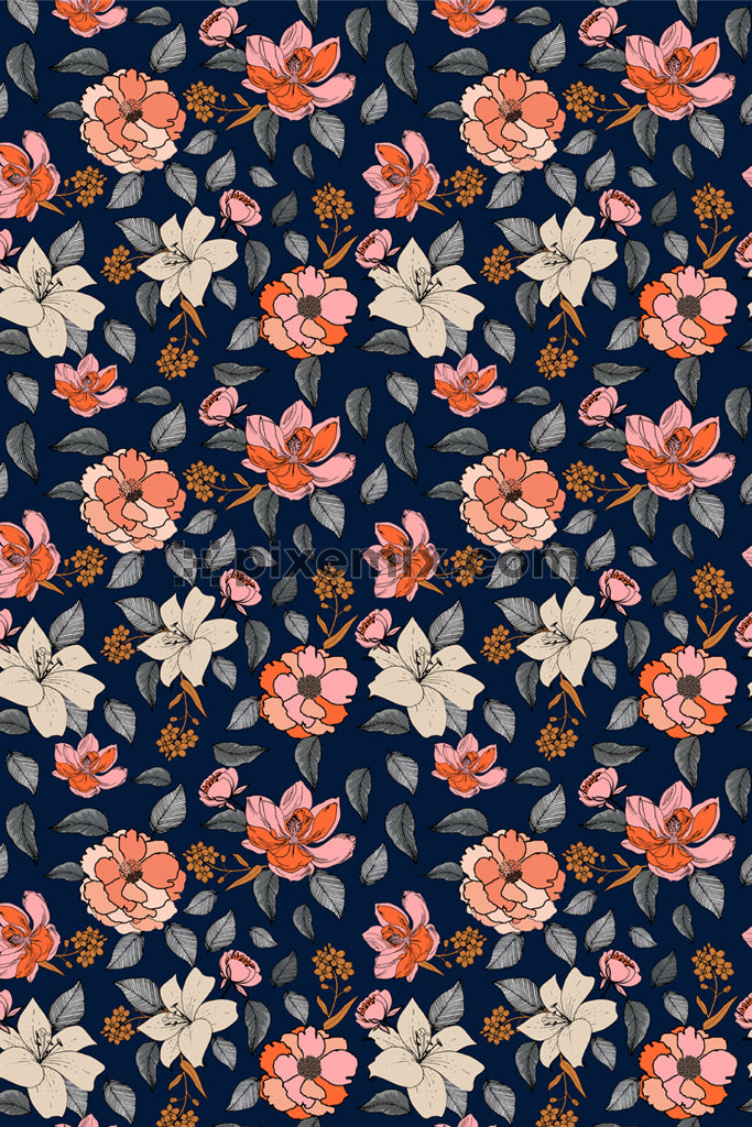 Florals and leaf product graphics with seamless repeat pattern
