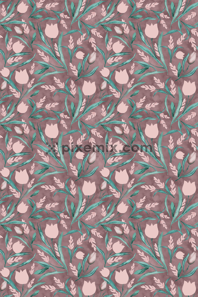 Doodle art leaf and florals product graphics with seamless repeat pattern